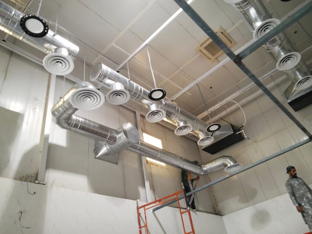 Ducting is the network of pipes/channels (usually sheet metal or flexible ducts) that carry cool or hot air from the HVAC unit to different spaces.